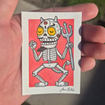 This is an ink and watercolor illustration done on a 2.5" x 3.5" sheet of Arches paper. This is an ACEO sized artwork, the size of a trading card.