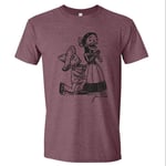 1 color screenprint on a Heather BLUE, Heather MAROON, or Heather PURPLE. Men's/Unisex 65% polyester/35% cotton Gildan softstyle T-Shirt. This is a soft comfortable lightweight T-Shirt that runs fitted so sizes run a bit smaller than an average T-Shirt.