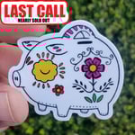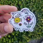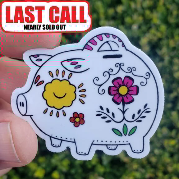 This is a high quality weather-proof vinyl sticker. The sticker is die-cut and measures about 2" x 2". This sticker has a white background.